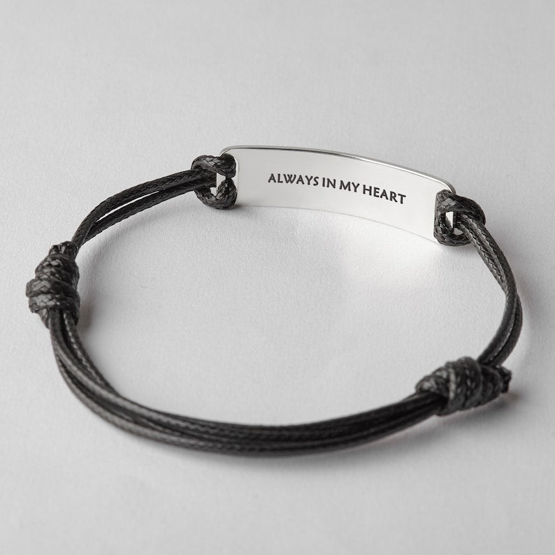 Give a heartfelt gift with our Leather Bracelet. This sleek bar bracelet with a soft leather cord, creating a cherished keepsake. Imagine gifting dad a bracelet with his child’s message or surprising your boyfriend with a note. This Bracelet is adjustable and engravable on both sides for a truly personal touch, making it a thoughtful gift for boyfriend or any special man.
