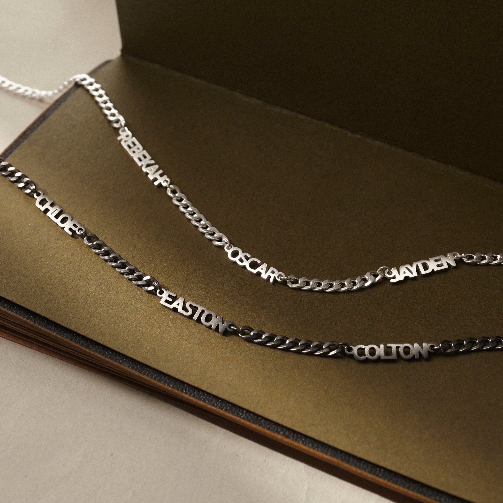 Carry their names close to your heart. This sleek and modern name necklace is a meaningful gift for any dad — personalized with the names of his children for a look that's both stylish and sentimental. Whether it's from his wife or his kids, it’s the perfect gift for Father’s Day, birthdays, or just because he deserves it.