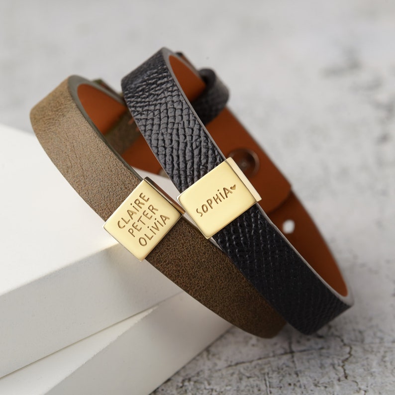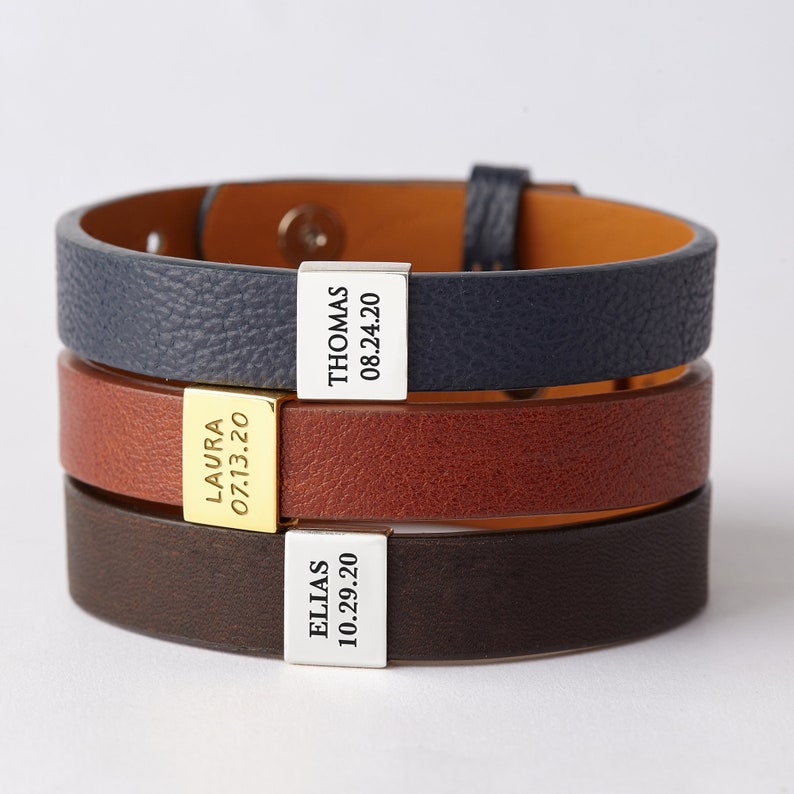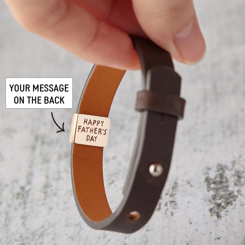 Crafted with genuine leather and a sterling silver charm, the Dad Bracelet With Kids Names holds the precious names of his children, a constant reminder of the love that binds them. Each engraved name whispers a story of laughter, tears, and unconditional love. For an even more personal touch, a short phrase can be engraved on the back, a secret message close to his heart.