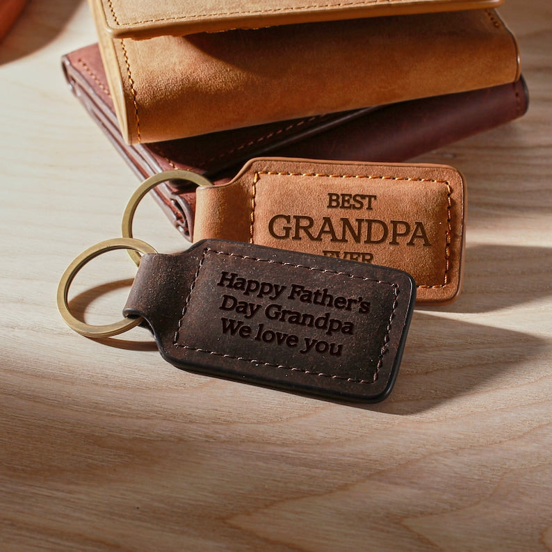 Celebrate the world's best Grandpa with this personalized keychain. Featuring loving titles like "Best Grandpa Ever," "Best Poppy Ever," or "Best Pop-Pop Ever" and a personal message from his loved ones, it's a perfect gift for Father's Day or any day.