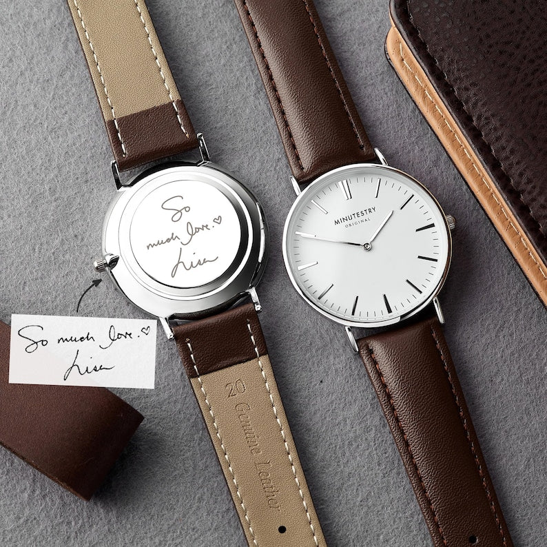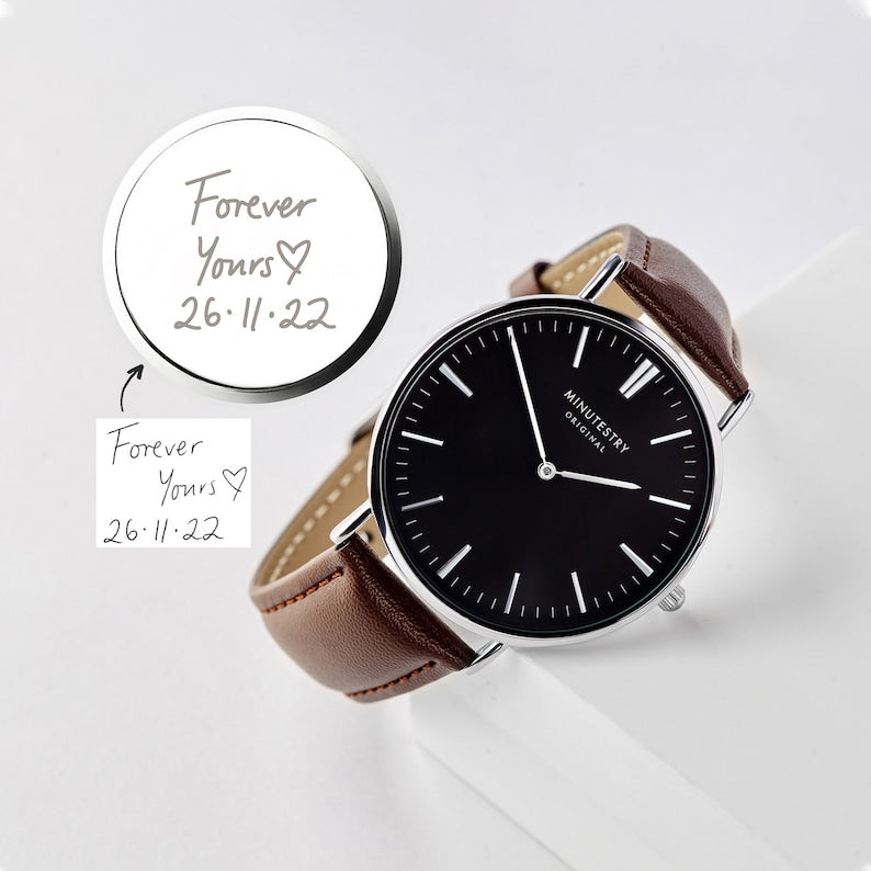 Personalize this mens watch with the actual handwriting written by his loved one to keep a memory always be in his heart. It makes a meaningful and unique gift for any special occasion.