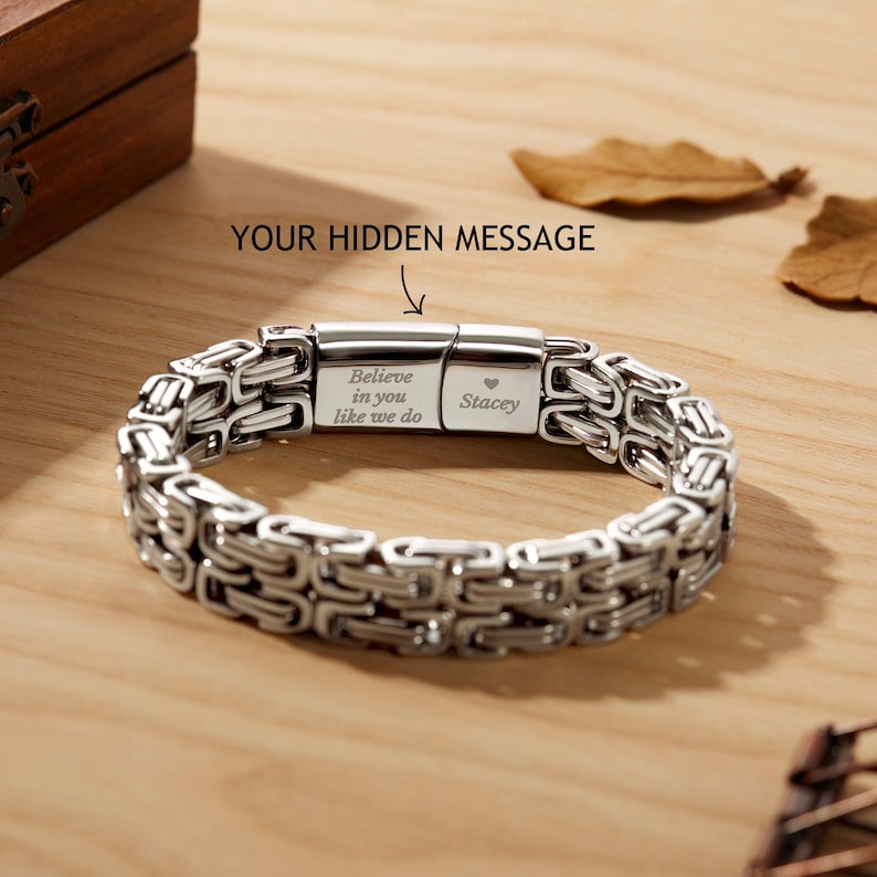 Surprise him with the Hidden Message Bracelet, a sleek and stylish piece that carries a heartfelt secret. Perfect as an engraved bracelet, it features a hidden custom message engraved inside, making it a meaningful custom gift for husband or a thoughtful gift for boyfriend. Whether it’s an anniversary, birthday, or just because, this secret message bracelet is a timeless way to show love and appreciation while keeping your special connection close.