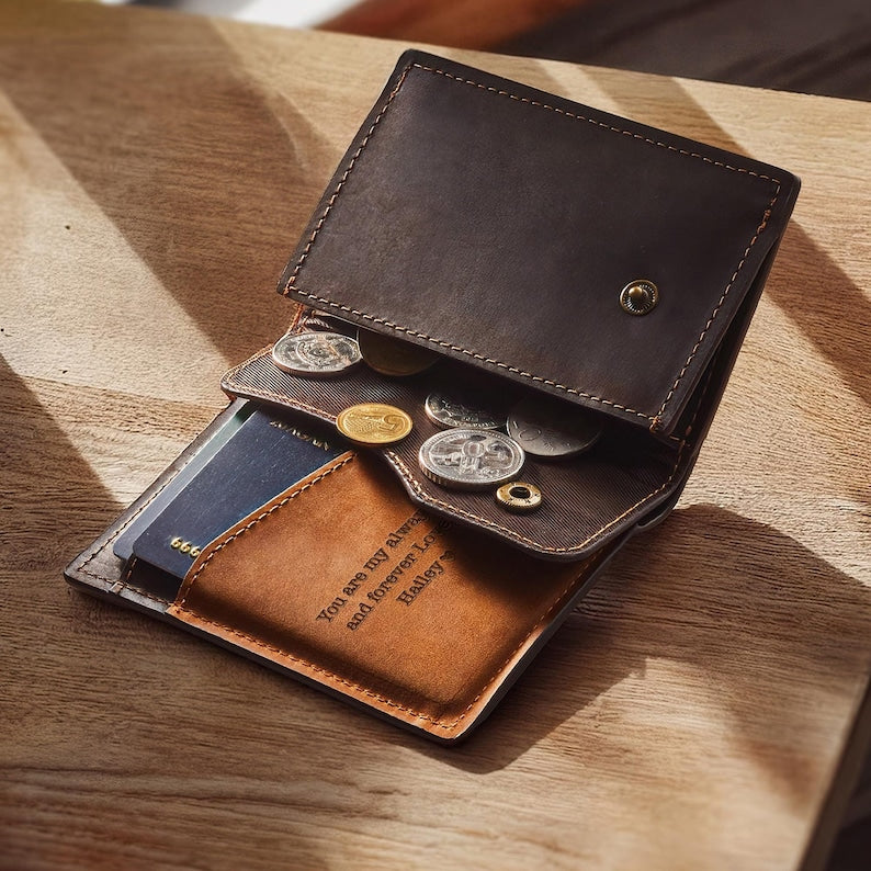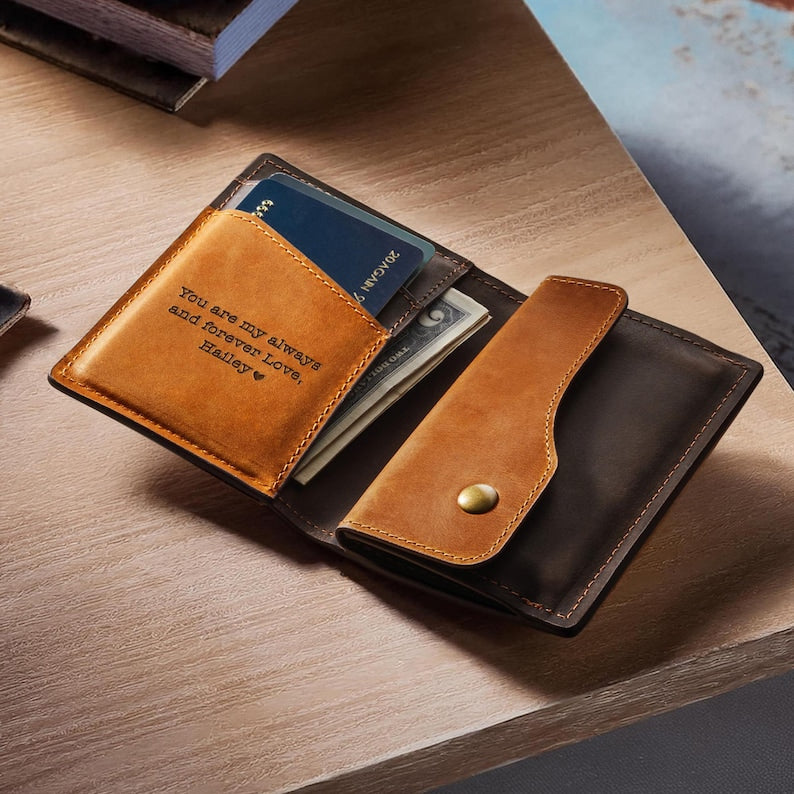 This wallet can be personalized with the monogram of your choice, making a special gift that will be cherished for years to come. You can add a custom message on the inside (up to 20 words) to have a perfect present for groomsmen, husbands, boyfriends or fathers.
