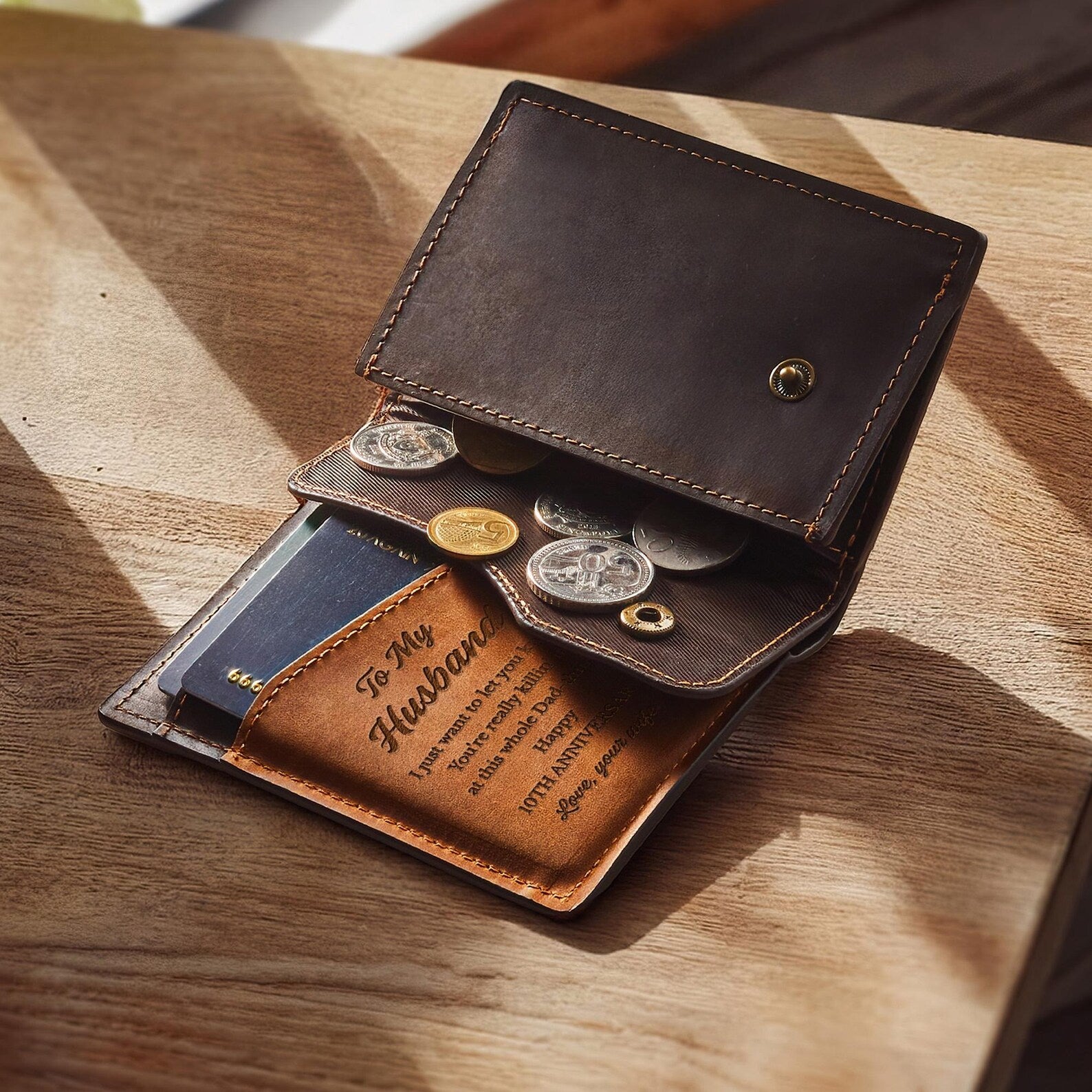 This wallet can be personalized with the monogram of your choice, making a special gift that will be cherished for years to come. You can add a custom message on the inside (up to 20 words) to have a perfect present husbands, boyfriends on Father's Day, Christmas or any occasions.