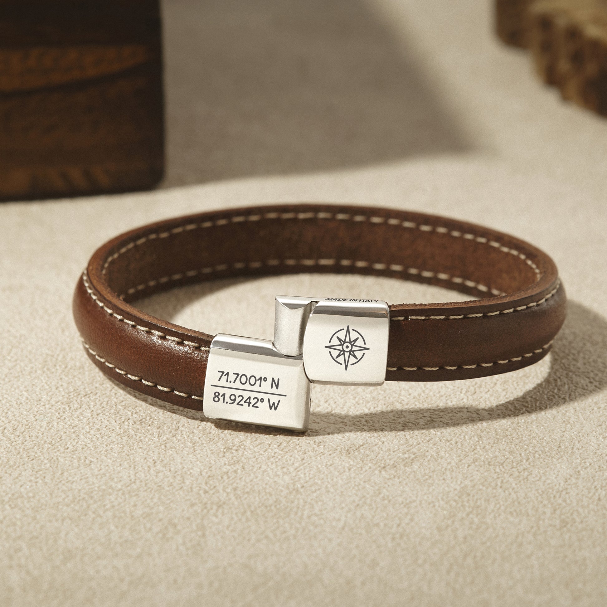 Italian Leather Coordinates Bracelet For Men