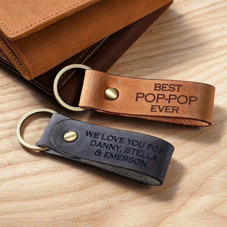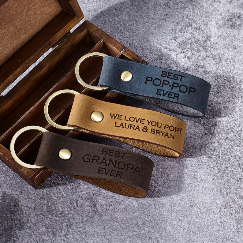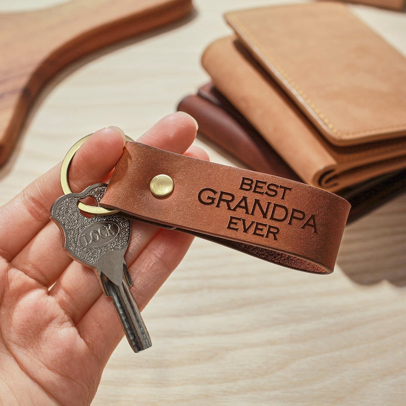 This personalized Keychain for Grandpa celebrates the special connection he shares with his grandchildren. Engraved with loving titles like "Best Grandpa Ever," "Best Poppy Ever," or "Best Pop-Pop Ever" and a personal message from the grandkids, it's a cherished keepsake he'll treasure.