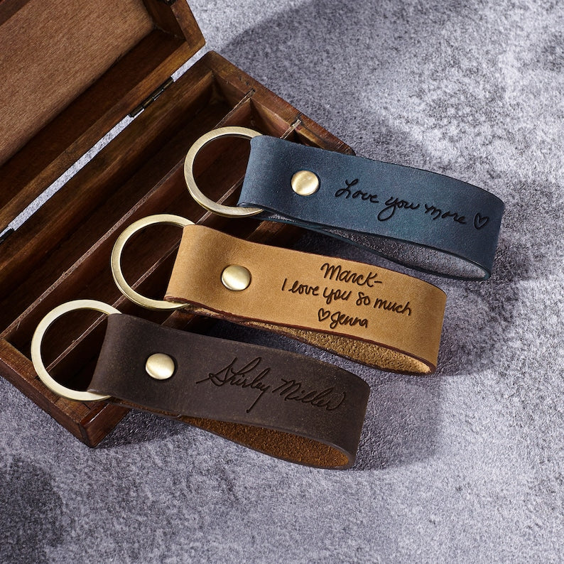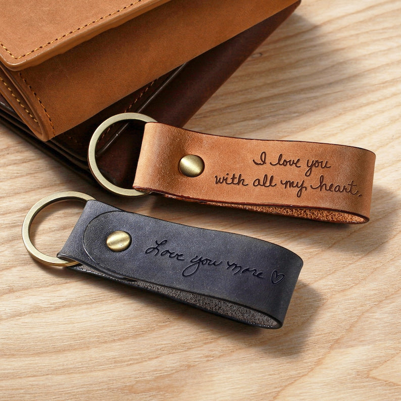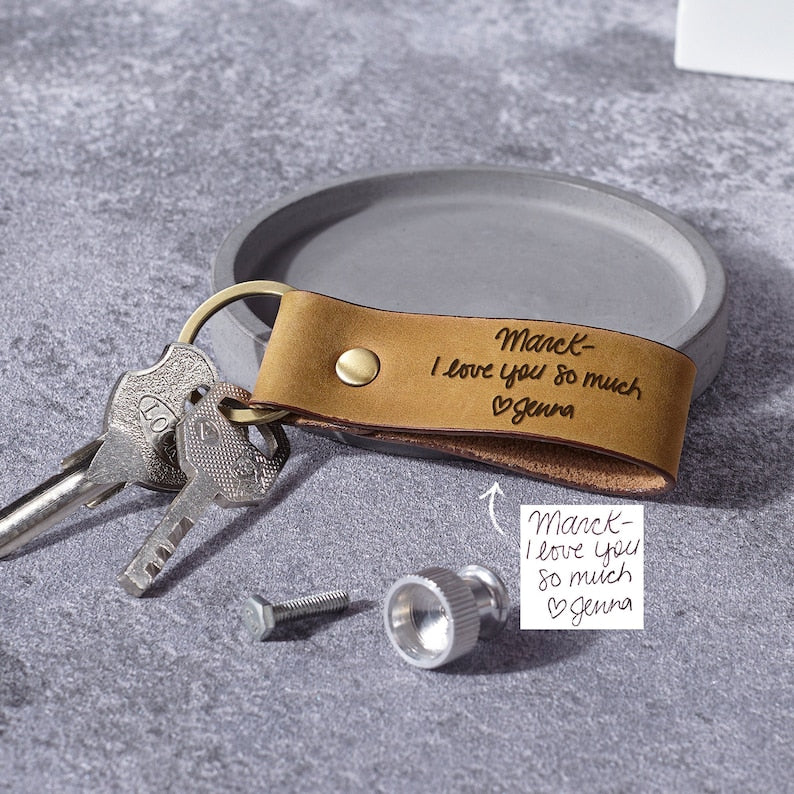 Leather Handwriting Keychain for Men