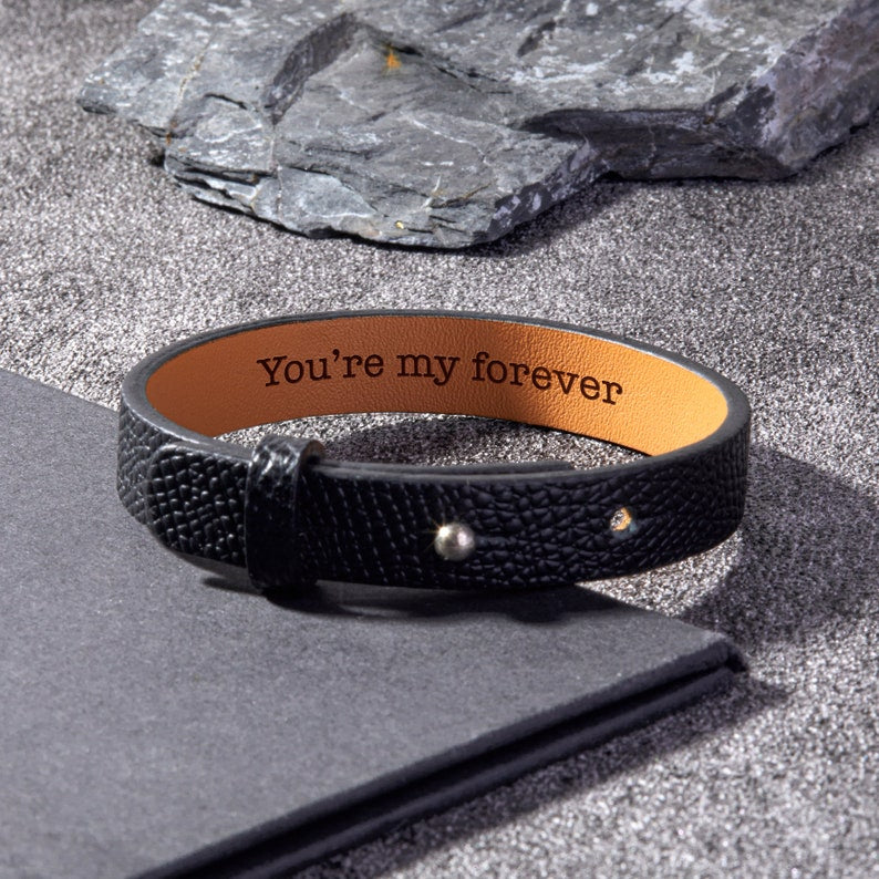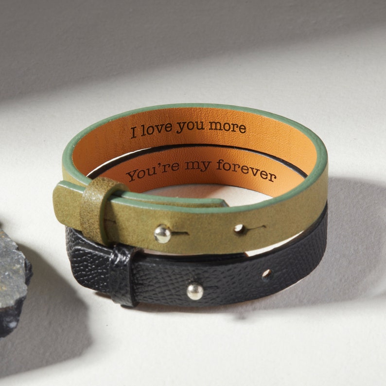 Share a secret message of love with our Leather Hidden Message Bracelet. This stylish leather band looks simple on the outside, but holds a sweet secret known only to you and your loved one. Gift him this bracelet with a hidden "I Love You" or another heartfelt message for a truly intimate and personal connection.