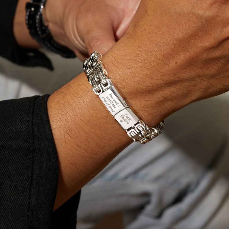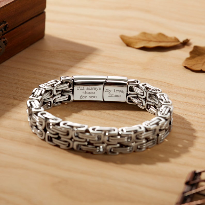 Show your love with our Men’s Engraved Bracelet, the perfect jewelry gift for him that captures heartfelt sentiments. Engraved with a message of your choice, this personalized bracelet makes a thoughtful gift for your partner, boyfriend, or husband, ideal for Christmas, birthdays, anniversaries, or any special occasion. Its sleek design and meaningful engraving ensure he’ll cherish this bracelet forever, serving as a constant reminder of your unique bond.