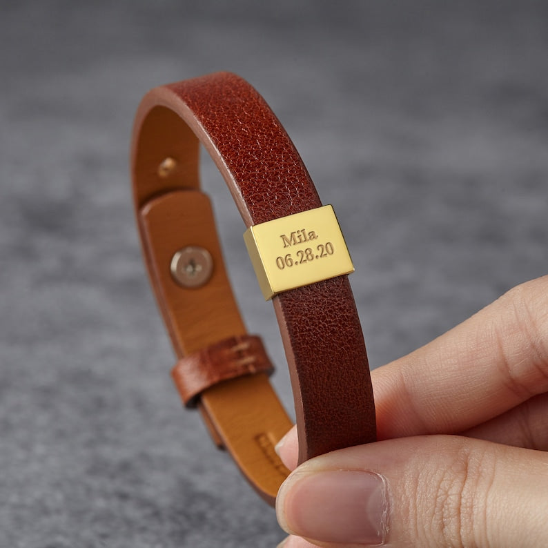 Give the new dad in your life a gift he'll cherish forever with this personalized New Dad Bracelet. Engraved with his children's names and birthdates, and with the option to add a short message on the back, this leather bracelet is a beautiful and lasting symbol of his growing family.