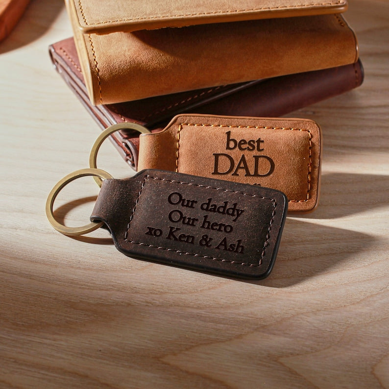 Honor the incredible role of a father with this Personalized Dad Keychain. Engraved with "Best DAD Ever" or a phrase of your choice on one side, it’s a meaningful keepsake he’ll carry with pride. Add a custom message to the reverse side to make it uniquely personal. Perfect for Father’s Day or any moment to show your love and gratitude.