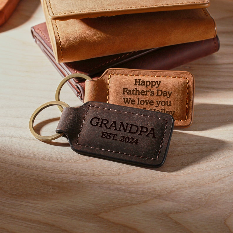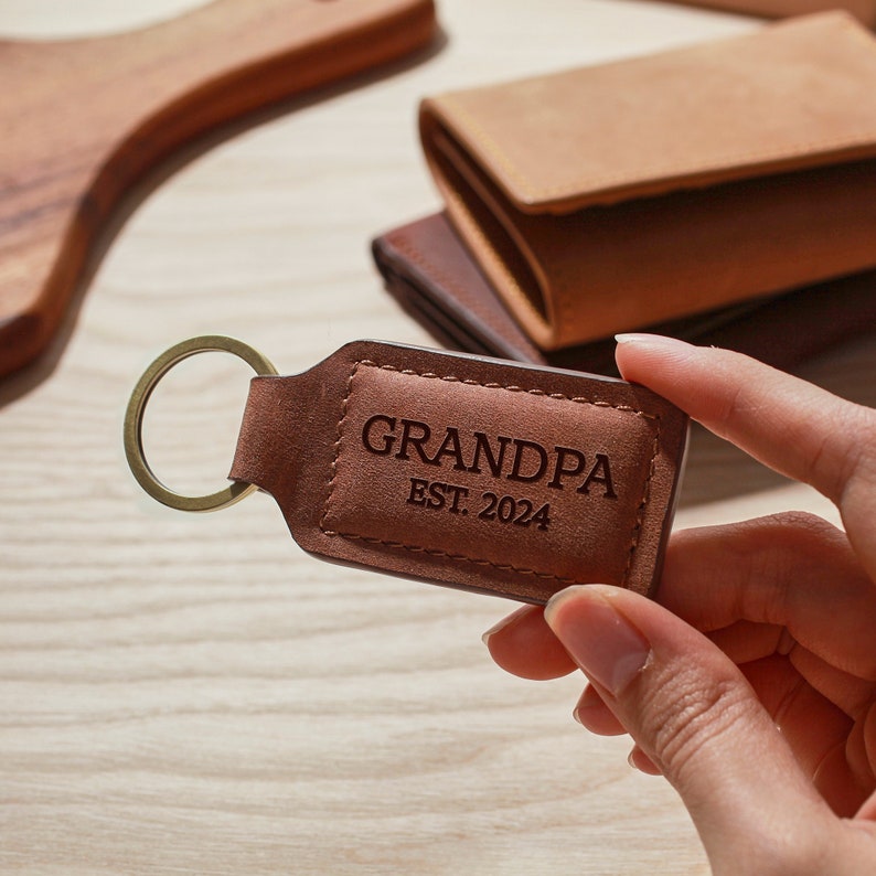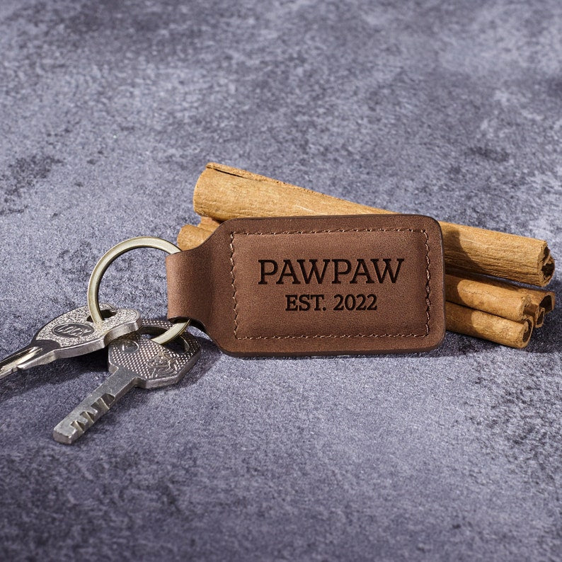 Give the new grandpa a tangible symbol of his connection to his grandchildren with this heartwarming keychain. Featuring the special "est." year for his new title—"Grandpa est. [Year]," "Pawpaw est. [Year]," "Gramps est. [Year]"—on one side, and a personal message from you on the other, it's a constant reminder of the precious new bond he shares.