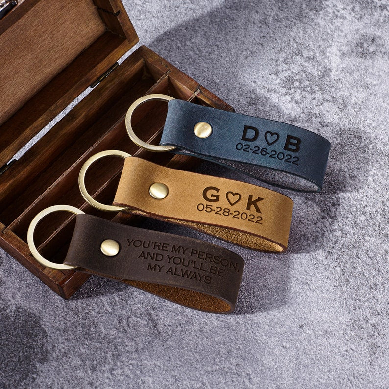 "You're My Person"—a simple phrase that says it all. These handcrafted, genuine leather keychains are personalized with a loving message on the front and a custom engraving on the back, making them a perfect gift for celebrating your special bond.