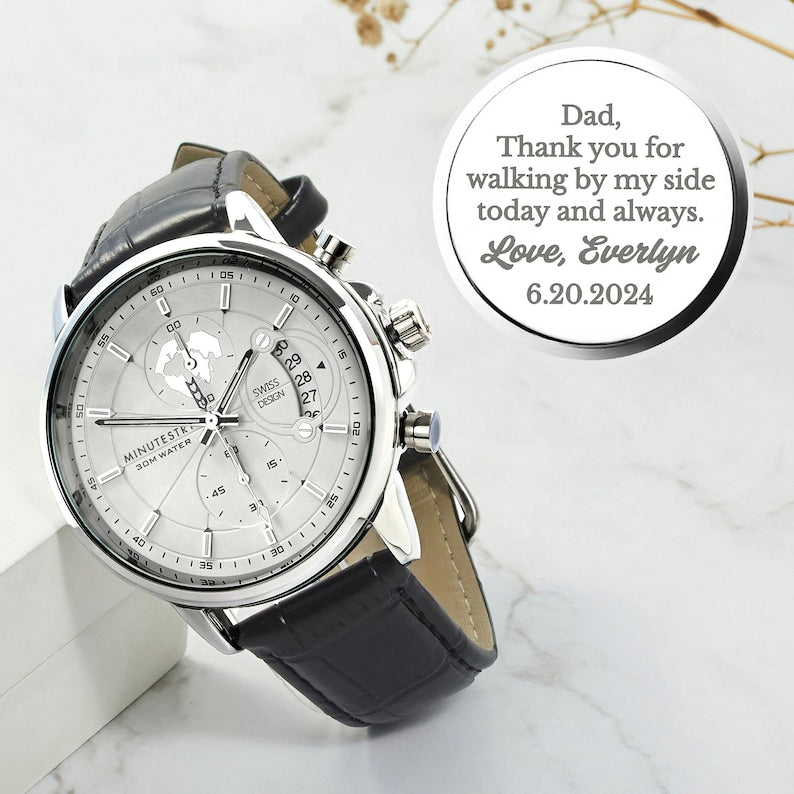 What could be meaningful than giving this unique watch to your dad on your Wedding day. You can leave your message you want on the back of the watch.
